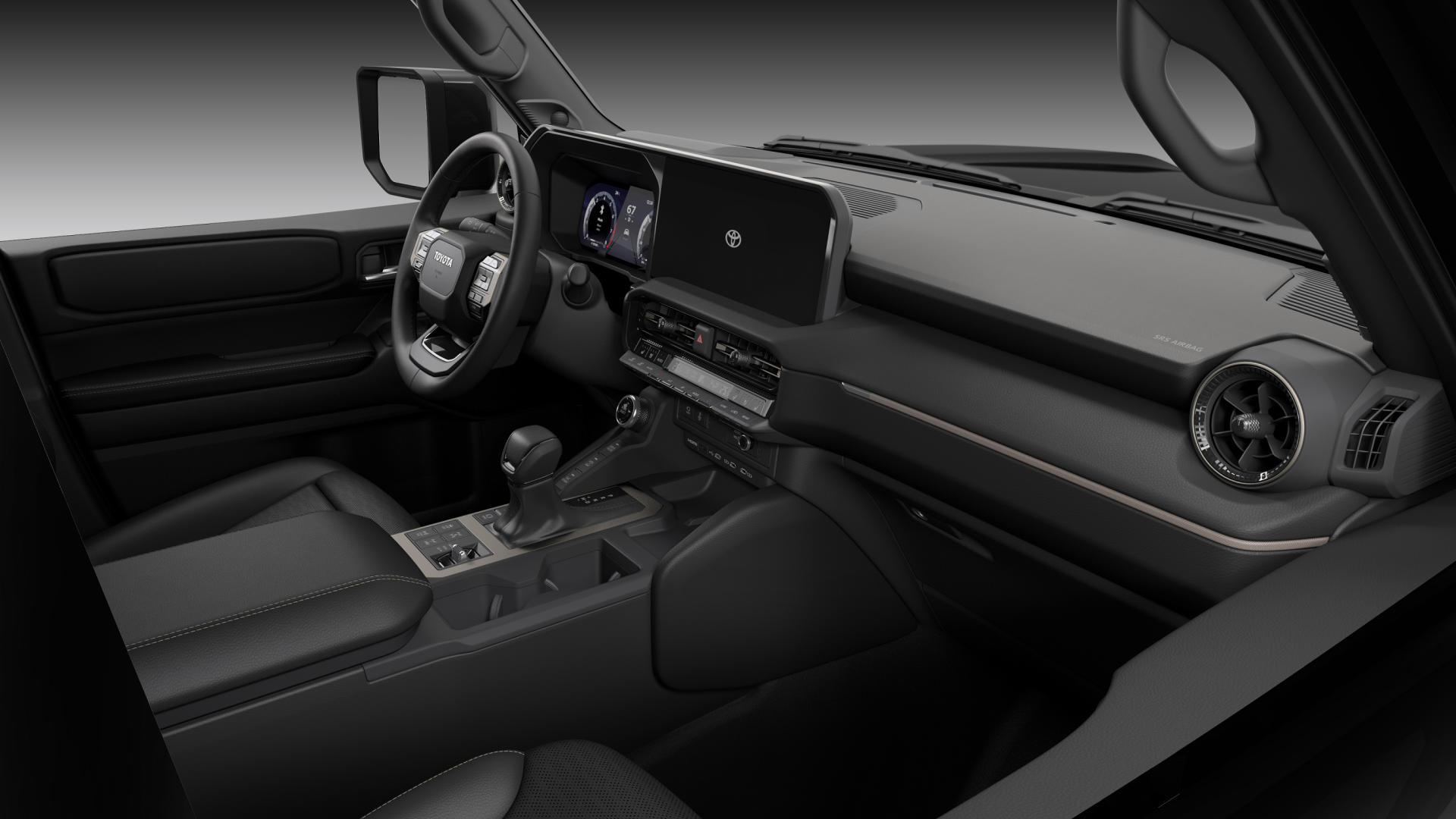Inside, the Prado employs a clean, stylish and functional interior design with dual digital screens for the instrument cluster and multimedia system, and an intuitive layout for the switches that group basic functions together.