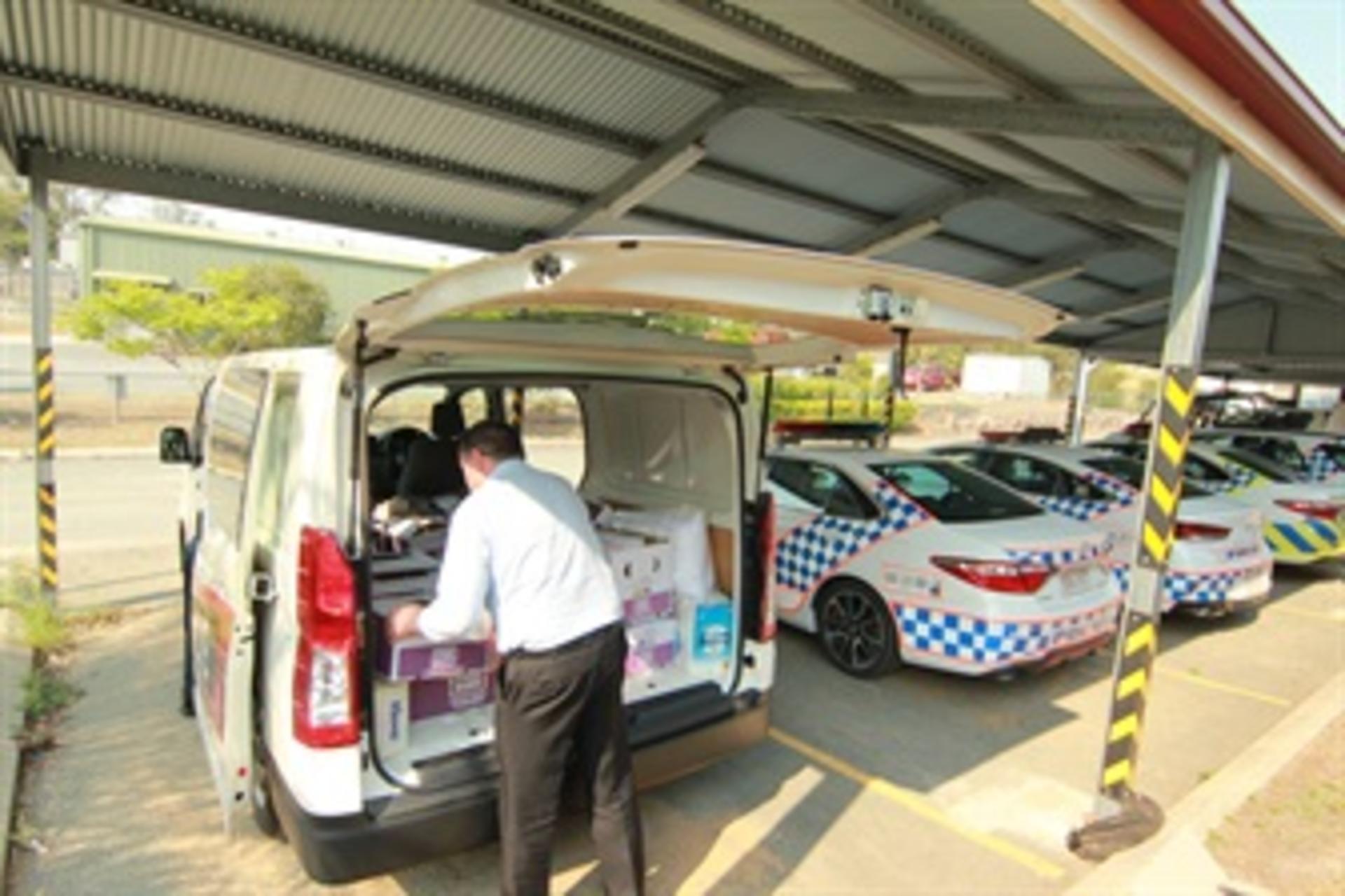 We were given a list of 9 locations from hospitals to police stations in Mudgeeraba, Nerang, Southport, Runaway Bay and Jimboomba where we had to pick up boxes of food, 129 in total. Thankfully Service Manager Mark Harris volunteered to help Terry and together they toget a few vans together and knock it all over in one hit.