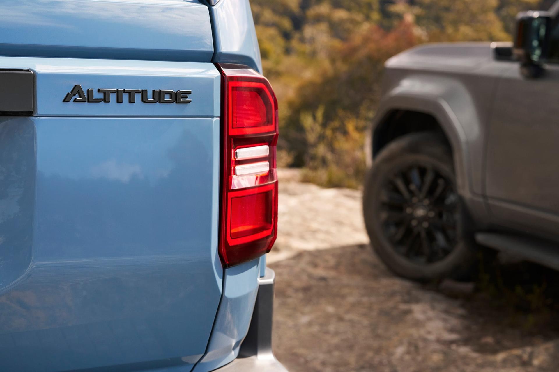 The five-seat Altitude introduces unique 18-inch alloy wheels with Toyo® (10) Open Country all-terrain tyres, a moonroof and black exterior trim. Inside, it is equipped with a digital rearview mirror, heated steering wheel and head-up display.