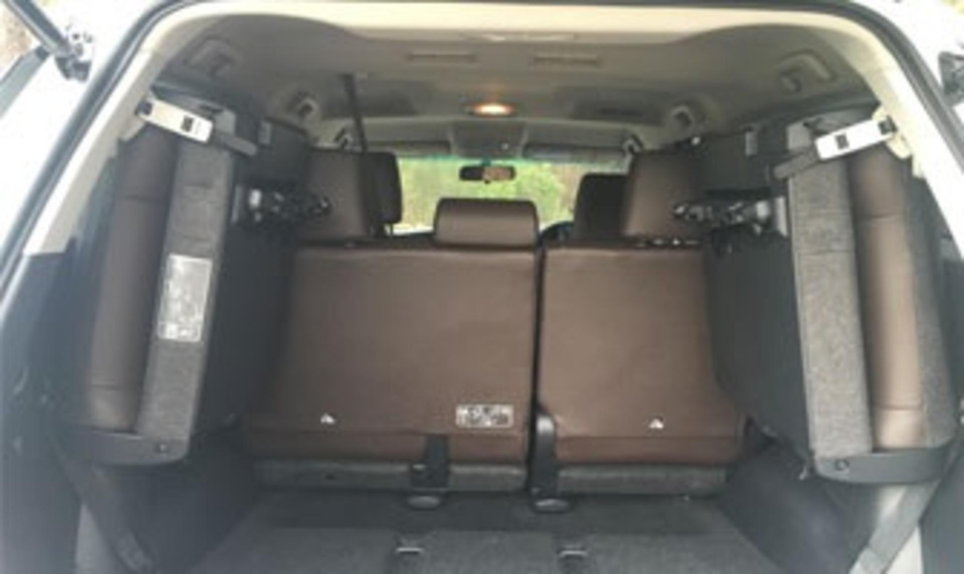 Speaking of seating, access to the third row is fine from the tumble down second-row, but it’s probably not easy for any elderly passengers due to the Fortuner’s height. Once you’re in, the third row is acceptable, and legroom is fine thanks to a sunken floor below the second row seats. When not in use, the two third row seats fold up rather than flat into the floor. They’re not overly heavy, and getting them down or up is easy enough, but it does look a little old-fashioned to have seats secured to the sides of the boot. The power tailgate on the Crusade works well, and is quite quick to open which is handy if you're heading back with full arms in the rain.