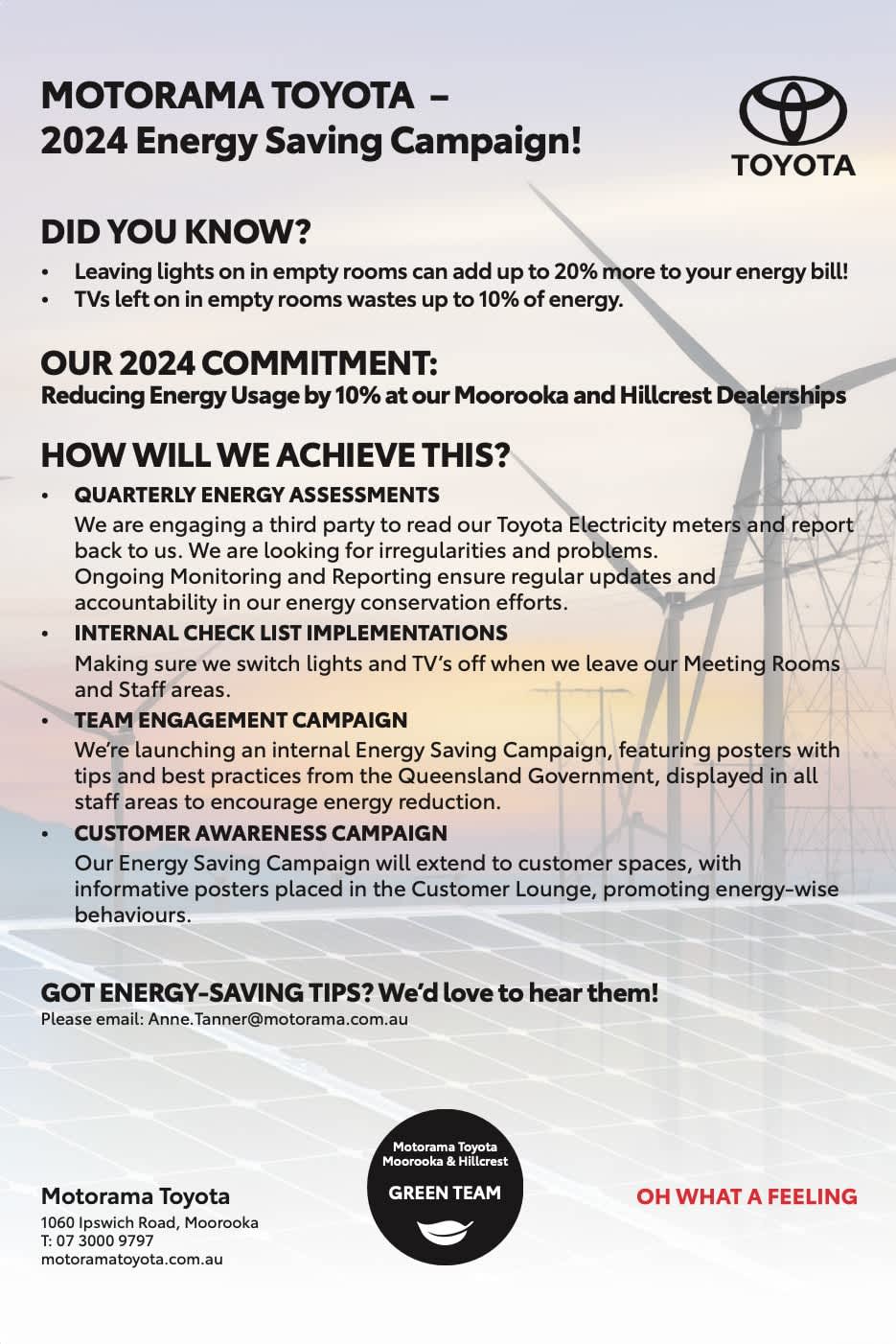 At Moorooka & Hillcrest Toyota, we are committed to leading by example. Will you join us from home? Every small action contributes to a more sustainable future!