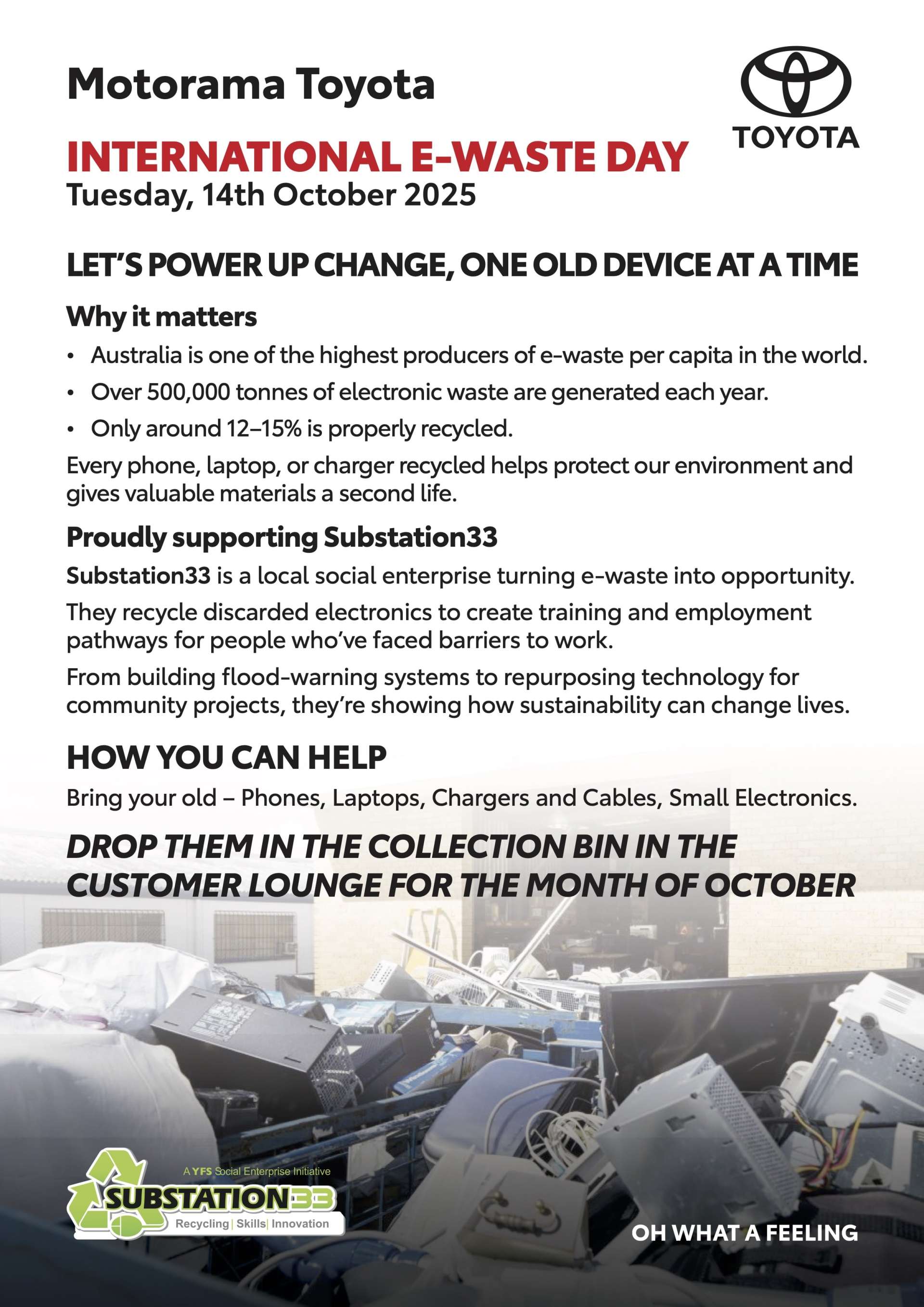 October was a big month for sustainability at Motorama Toyota, with our team focusing on two key environmental initiatives, National Water Week and International e-Waste Day.