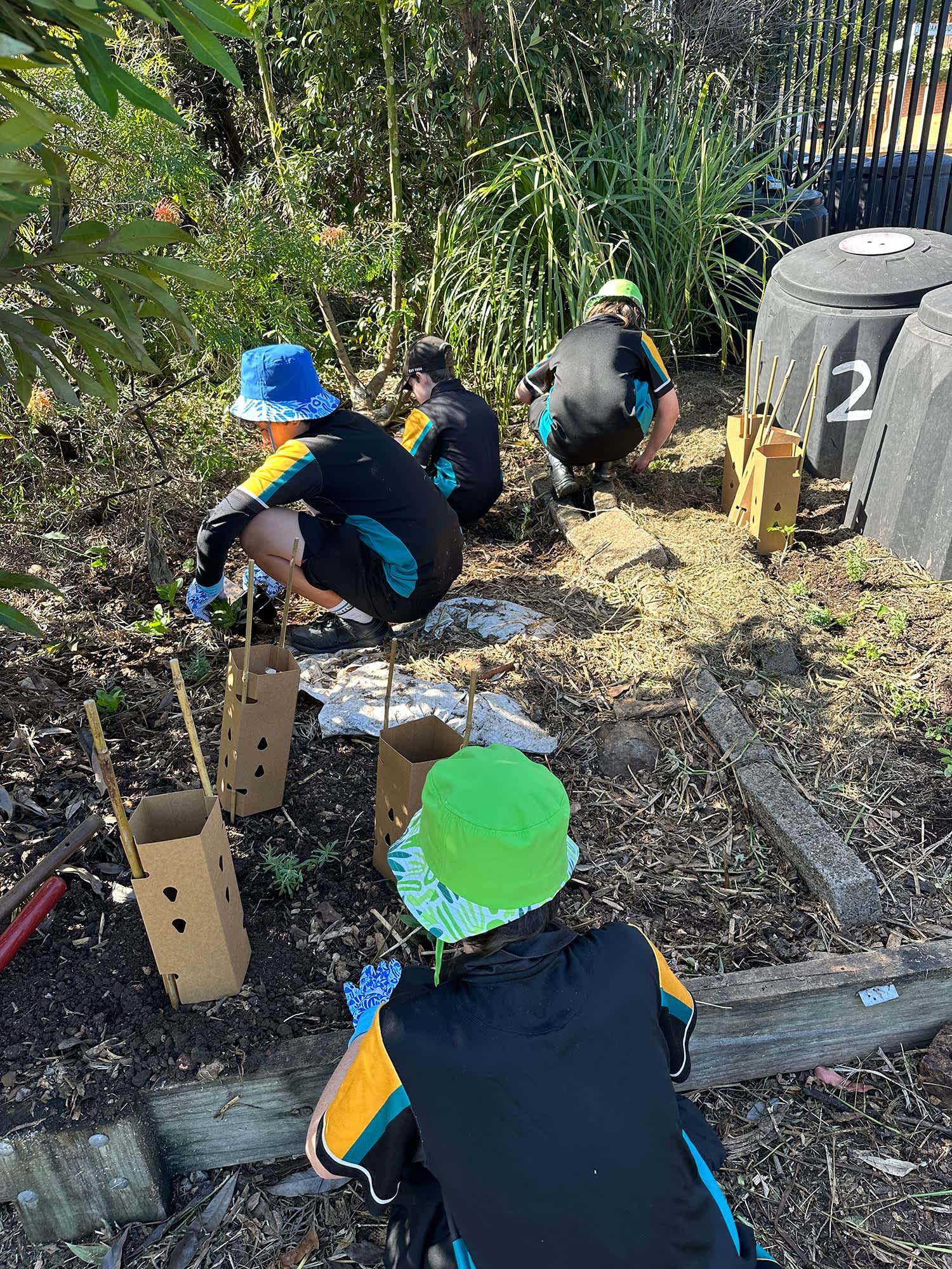 Yeronga State High School provided a Wishlist of plants to support the bees, and the Schools Sustainability Captains, Scarlet and Ben, planned the day.